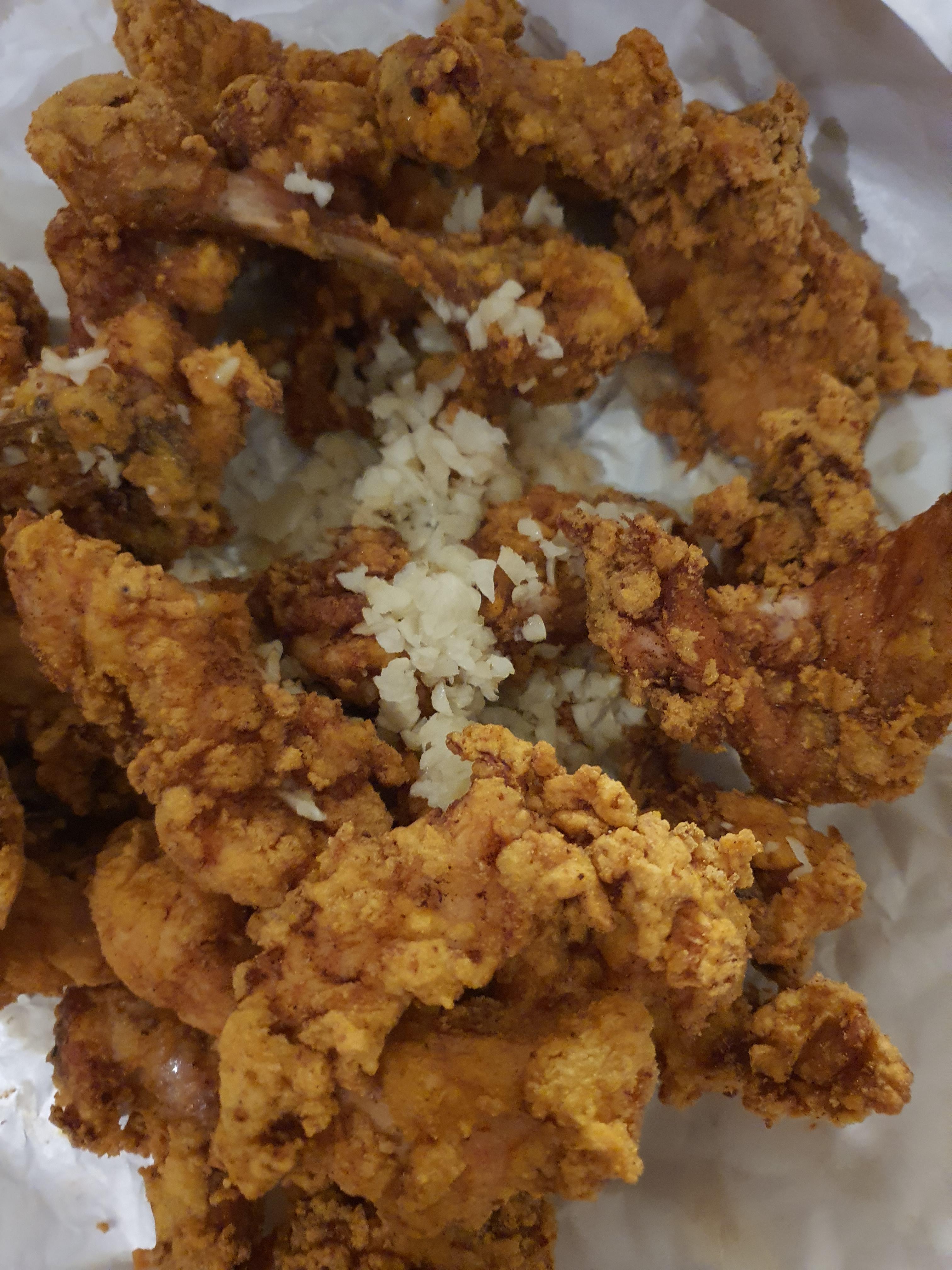 사진에 표현이 잘 안 되었으나 양이 상당한데, 닭이 크기도 하고 살을 발라서 튀겨 표면적이 커졌기 때문이기도 하다